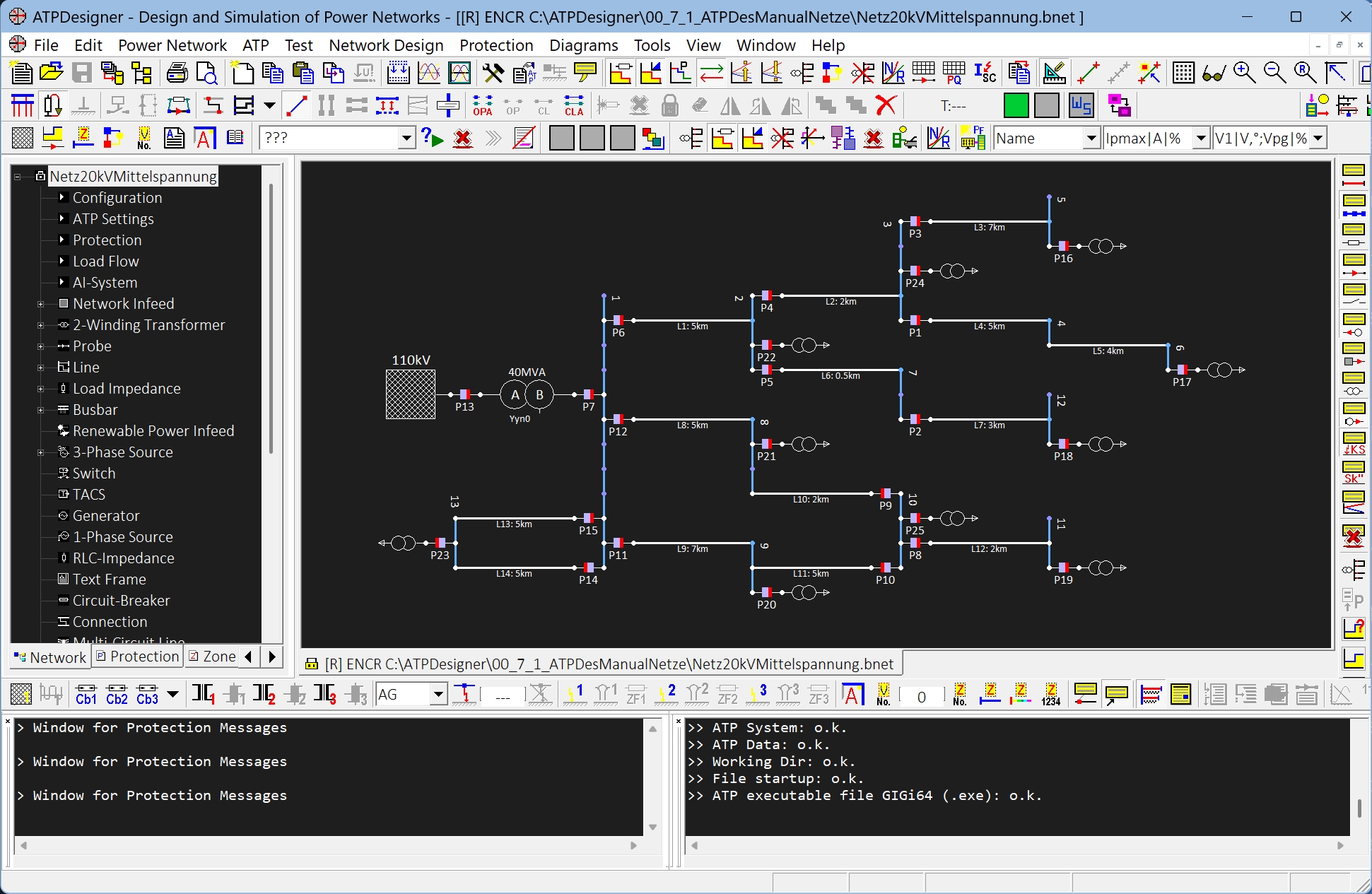 The power grid calculation program ATPDesigner is a graphical user interface for simulating voltages, currents, power and various mechanical parameters in electrical power grids, which utilises the ATP (Alternative Transients Program, www.atp-emtp.org). The interface between ATPDesigner and ATP is established via text files. During the simulation, ATPDesigner generates an .ATP-file containing all the necessary data for the power grid, which can then be processed by ATP. This means there is no need to deal with the complex rules and regulations of ATP. As a result, ATP produces an .LST-file (load flow results) and a diagram file (.PL4 file).