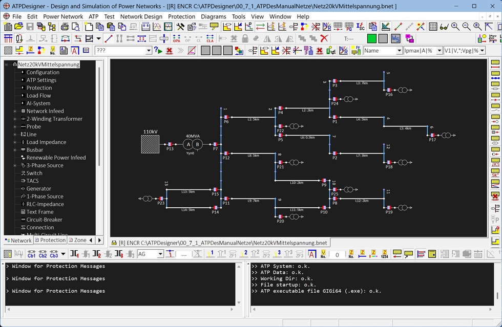 ATPDesigner enables the behaviour of the power system to be calculated and analysed using the ATP, both in steady-state and transient conditions. ATPDesigner is therefore particularly well suited to the analysis and assessment of short-circuits in conjunction with power system protection relays, as well as for load flow calculations during normal operation conditions.