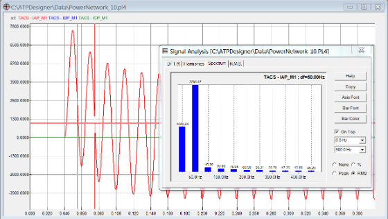 The network simulation program ATPDesigner is also able to process several Signal Analysis Methods e.g. the calculation of the frequency spectrum of currents or voltages.