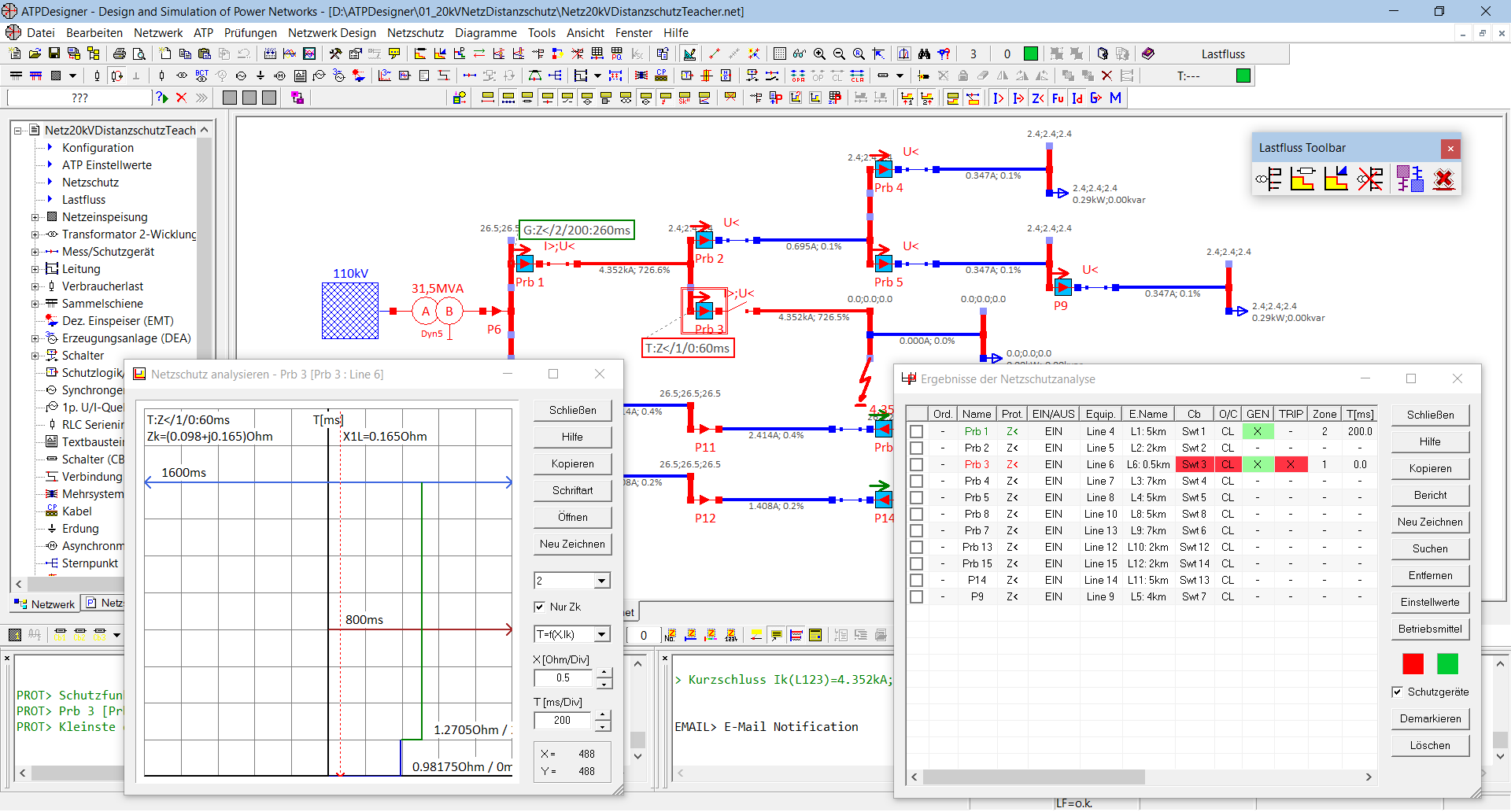 ATPDesigner can examine the power grid with the ATP calculation kernel in its steady-state as well as in its transient behaviour. ATPDesigner is therefore particularly suitable for the analysis and evaluation of short circuits in power grids, but also for load flow calculation.