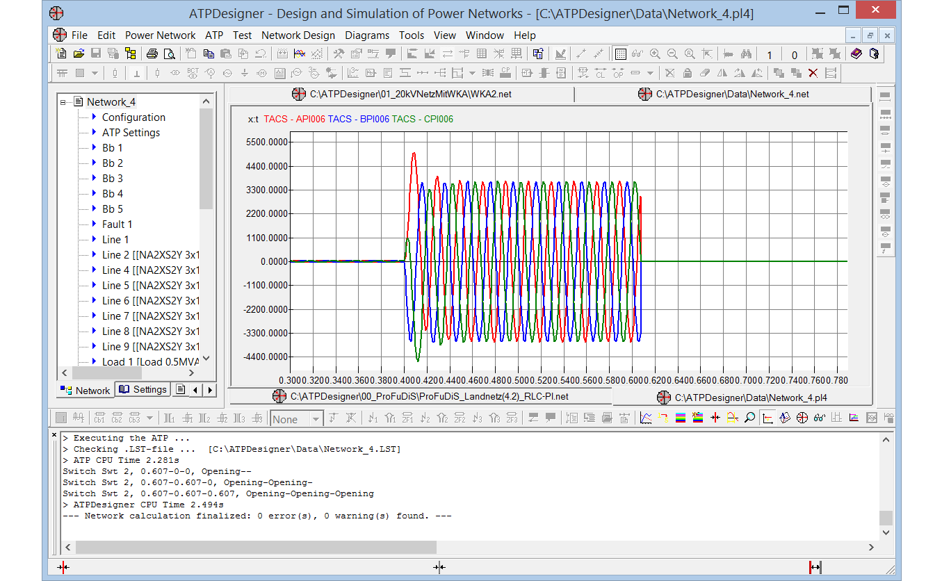 Not only the design and the analysis of the transient behavior of power networks in case of network faults but also the analysis of the stationary behavior of electrical power networks is supported. Short Circuit Analysis or Load Flow Analysis of power networks are also implemented as part of ATPDesigner capabilities.