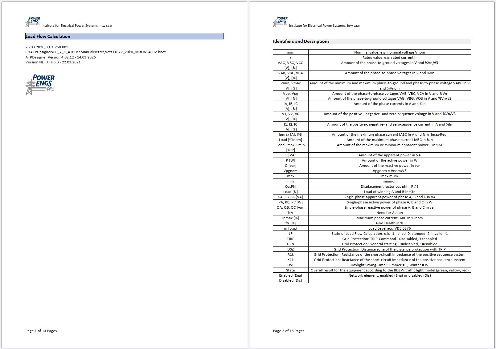 In addition, the results of the load flow calculation are saved in CSV and XLSX files.
