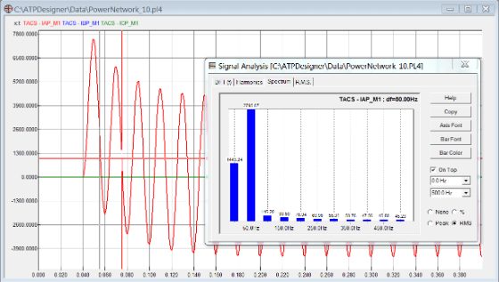 The network simulation program ATPDesigner is also able to process several Signal Analysis Methods e.g. the calculation of the frequency spectrum of currents or voltages.